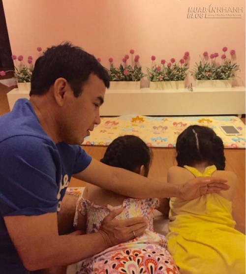 Nghệ sĩ Quyền Linh được nhiều người ngưỡng mộ khi đăng ảnh đấm lưng cho hai con gái cưng.