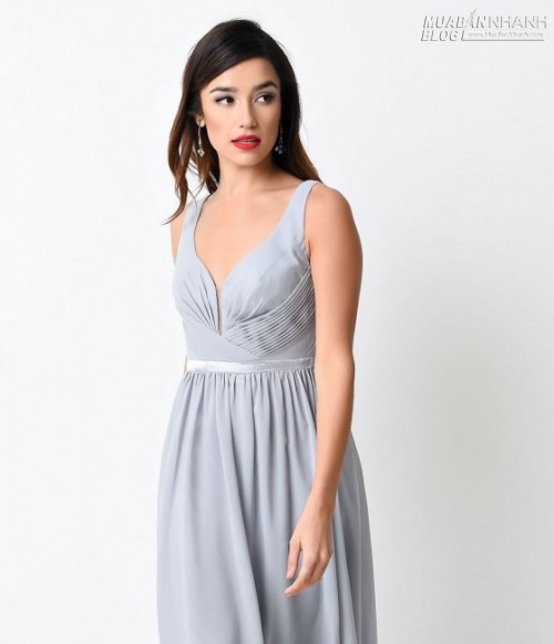 1. Hãy thử một chiếc váy cổ chữ V với dây đai rộng