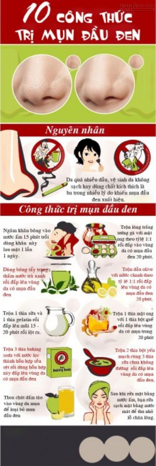 Mụn đầu đen luôn là nỗi lo thường trực của chị em bởi nó không chỉ khiến làn da mất thẩm mỹ mà còn là 1 trong những biểu hiện của 1 làn da không khỏe mạnh và thiếu sạch sẽ. Dưới đây là 10 công thức trị mụn đầu đen tại nhà, không những đơn giản mà còn hiệu quả, mời chị em cùng tham khảo!