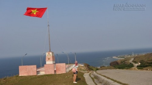 Cột cờ Tổ quốc trên đỉnh Thới Lới: Công trình Cột cờ Tổ quốc tại huyện đảo Lý Sơn được khởi công xây dựng từ ngày 4/5/2013, trên núi Thới Lới- ngọn núi cao nhất ở đảo Lý Sơn. Cột cờ có chiều cao 20m, đế trụ cờ và móng cột cờ được xây dựng bằng bê tông cốt thép, mặt hướng ra quần đảo Hoàng Sa. Đây là điểm chụp hình rất được yêu thích của nhiều du khách khi đến Lý Sơn. Ảnh: San San