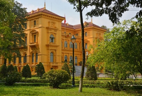 Phía sau Lăng Chủ tịch Hồ Chí Minh là một căn nhà sàn khiêm tốn, nơi Chủ tịch Hồ Chí Minh sống trong những năm 1960. Ngôi nhà sàn mang dáng dấp của một ngôi nhà nông thôn truyền thống, tại đây còn có cả một khu vườn tươi tốt cũng như ao cá chép. Trong quần thể di tích này còn có cả Phủ Chủ tịch, được xây dựng cho Thống đốc Pháp trong thời kỳ thuộc địa vào đầu những năm 1900. Tòa nhà này ngày nay được dùng để tiếp các đoàn khách quốc tế quan trọng và không mở cửa cho công chúng vào tham quan.