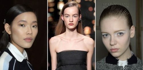 Xu hướng tóc ướt chải mượt đã trở nên thịnh hành trong mùa mốt Xuân Hè, nhưng đến mùa Thu Đông thì phong cách này được biến đối để dễ ứng dụng hơn. Bạn chỉ cần dùng gel vuốt thật nhiều lên phần tóc phía trước trán, rồi chải ngược ra sau hoặc chải sang một bên. Với phần tóc phía sau, bạn có thể buộc thành đuôi ngựa thấp hoặc thả xõa, gài ra sau tai. Đây là kiểu tóc rất phù hợp với những sự kiện trang trọng, đặc biệt là hợp với các bộ đầm dạ hội hở vai, tạo vẻ gợi cảm, giúp bạn nhìn thanh mảnh hơn.