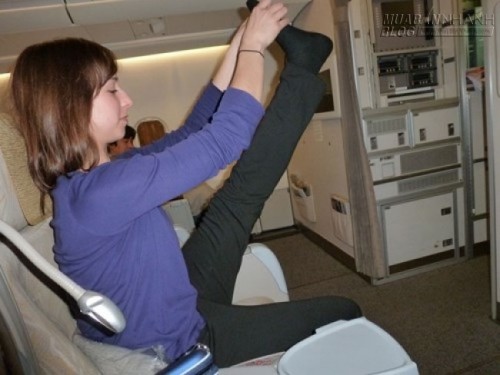 - Hoạt động: Tại sân bay, hãy vận động nhiều nhất có thể, đừng nên ngồi một chỗ. Điều này sẽ giúp bạn không cảm thấy uể oải trước khi bay. Và tới khi đã lên máy bay, hãy duỗi người, di chuyển xung quanh để giúp máu lưu thông và không bị mê mệt trong thời gian bay.