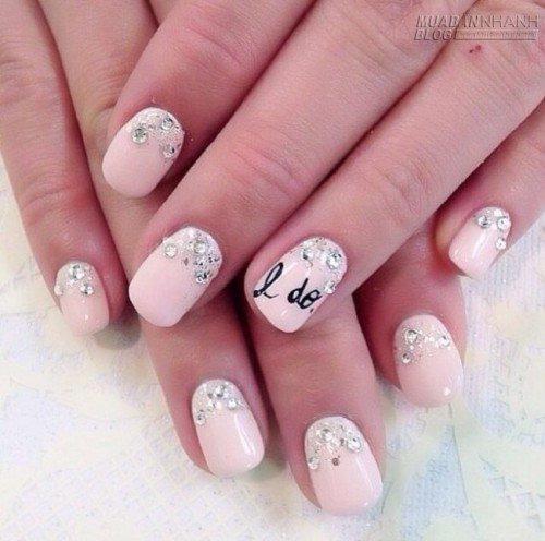 4. 10 ngón tay sơn hồng nhạt rồi đính đá, chỉ riêng ngón áp út bên tay trái có nét vẽ chữ “I do” (Em đồng ý) là một ý tưởng chắc chắn sẽ khiến chú rể bất ngờ!