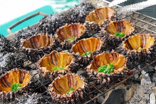 Ngoài việc để làm mắm, nhum nướng cũng là một đặc sản rất ngon của Nam Du. Nhum ngon nhất là khi nướng vừa chín tới, ngoài mùi thơm ngậy của mỡ hành, món ăn còn có vị béo ngọt, mặn mặn của thịt nhum.