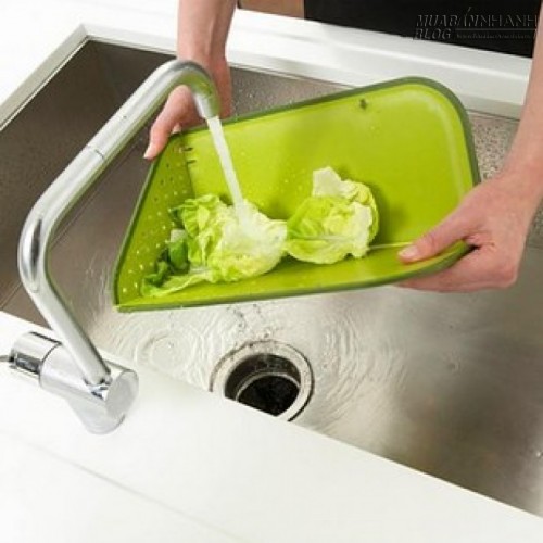 1. Thớt kiêm luôn rổ, có thể dùng để rửa rau luôn