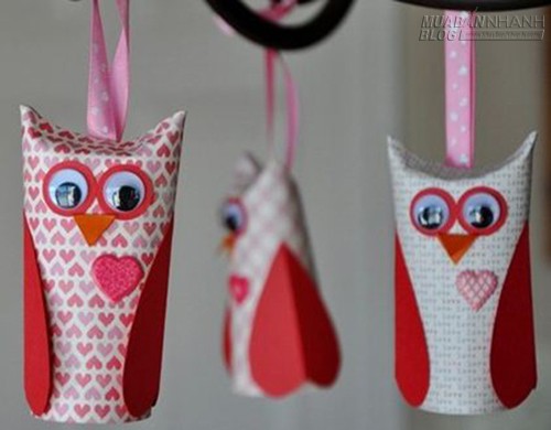 Ngoài ra, khéo léo trang trí và và cắt tạo hình các ống giấy vệ sinh, cũng giúp bạn sáng tạo nên những con cú hết sức ngộ nghĩnh.