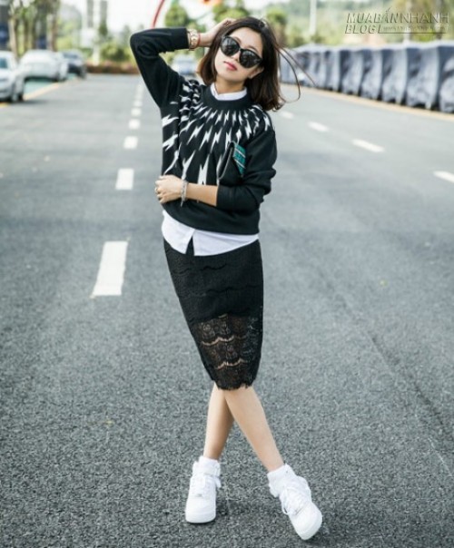 ...hay cùng chiếc chân váy ren gợi cảm như thế này.
