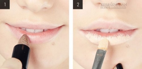 4. Tạo độ dày cho môi: Để sở hữu đôi môi cong, dày đầy cuốn hút, bạn chỉ cần kẻ viền môi màu nude rồi tô son như bình thường.