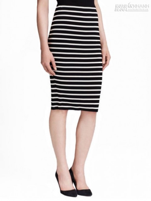 Chân váy thun kẻ sọc đen trăng co giản cho mùa thu đồng ấm áp hơn.