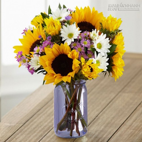 4. Đưa hoa hướng dương và cúc hồng vào nhà