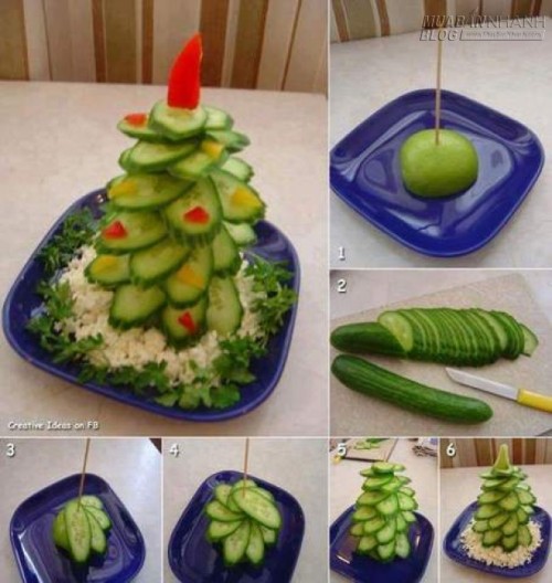 Thêm không khí Giáng sinh bằng 1 cây thông Noel từ hoa quả đặt trên bàn ăn thì còn gì thú vị hơn.
