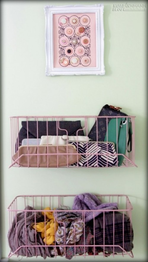 Ngoài những cái giá, bạn có thể gắn các thanh nhựa lên cửa để treo khăn quàng hay thắt lưng. Thay vì vứt thắt lưng và khăn quàng vào một cái hộp nào đó mà mỗi lần muốn kiếm, bạn phải lục tung cả căn phòng thì hãy treo chúng lên, vừa ngăn nắp lại mang tính thẩm mĩ cao.