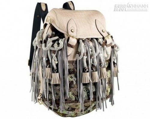 Chiếc ba lô đặc biệt này của LV là sự kết hợp của nhiều loại vải dệt và da cá sâu, da rắn.