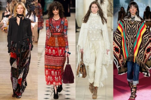 Ngược lại vẻ trong sáng của váy babydoll, phong cách boho thích hợp cho những ai yêu chuộng sự hoang dại, phóng khoáng. Mùa thu này, bạn sẽ bắt gặp các mẫu sản phẩm tua rua, áo cánh dơi họa tiết dân tộc, váy suôngdài chắp vá... Nếu muốn đổi gió, đây là một gợi ý cho bạn.