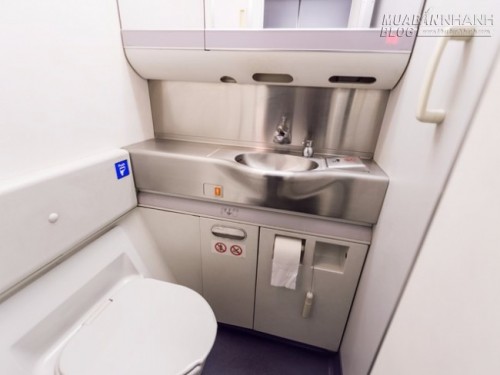8. Thận trọng khi dùng nhà vệ sinh: Theo một nghiên cứu của James Barbaree, phó giáo sư kiêm chủ nhiệm Trung tâm Nghiên cứu và An toàn Thực phẩm thuộc đại học Auburn, trong khi vi khuẩn tồn tại trong thời gian ngắn hơn ở bề mặt bằng nhựa, chất liệu này lại giúp lây truyền mầm mống gây bệnh tới tay con người nhanh hơn. Bạn nên dùng khăn, giấy để lót tay khi mở cửa toilet hay chạm vào nắp bồn cầu. Bạn cũng nên tránh đánh răng bằng nước lấy ở trong nhà vệ sinh và chỉ dùng nước rửa tay khô, do nước trong nhà vệ sinh cũng lấy chung từ thùng chứa nước của máy bay. Ảnh: Shutterstock/Tratong.