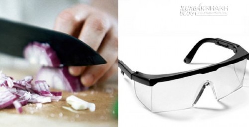 Để bảo vệ mắt không cay khi thái hành, bạn có thể đeo kính để bảo vệ mắt. Kính bơi hay kính làm vườn đều được, miễn là chúng che kín đôi mắt.