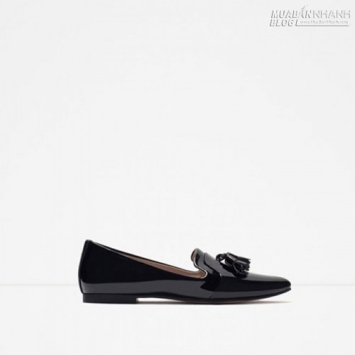 Bạn thích sự trẻ trung và tiện dụng của giày slipper? Đôi slipper của Zara trong sắc đen cổ điển, da bóng và tua rua hội tụ những yếu tố khiến cho đôi giày trở nên cuốn hút hơn cả. Bạn sẽ cực kỳ thích đi đôi slipper này trong thời tiết này mà vẫn thời trang. Giá của đôi slipper đen này là 35.9$, tương đương 771.000 VNĐ.