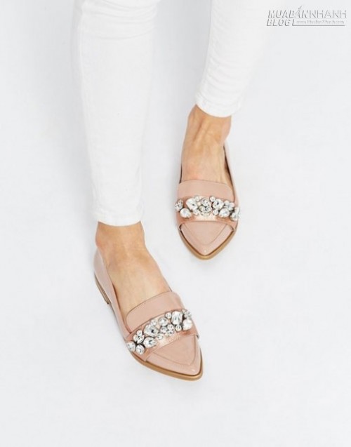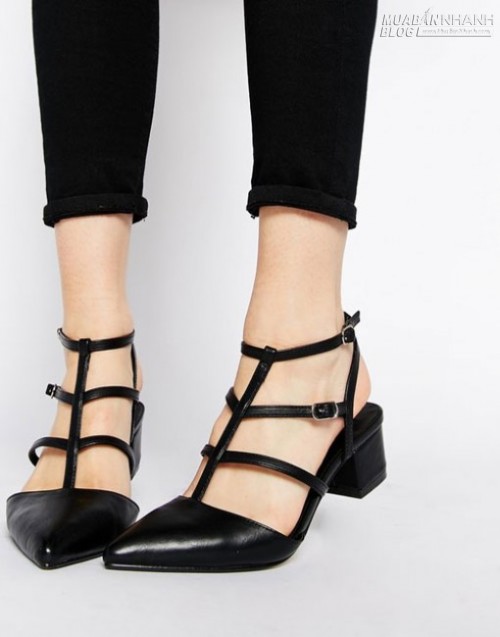 ới dáng giày đế thấp 3-5cm cùng lớp dây đan trên thân giày ôm chân tuyệt đối, đôi giày mũi nhọn này là 1 gợi ý tuyệt vời giúp bạn vô tư sành điệu lại cực kì "chắc chân" đấy nhé! Giá của đôi ASOS này là 63$, tương đương 1.350.000 VNĐ.