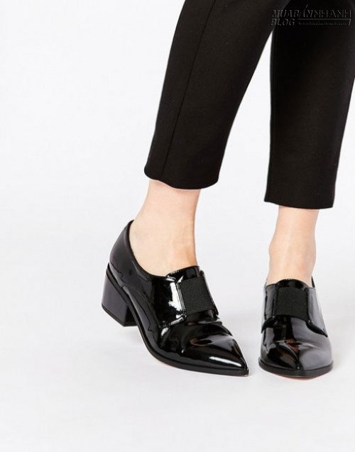 Vẻ nổi bật, ấn tượng kết hợp với sự nghiêm nghị, lịch lãm của đôi brogues mũi nhọn da bóng lấp lánh đen mà hãng ASOS chào bán sẽ mang tới một nhân tố thật mới lạ cho set đồ của bạn. Đôi giày này mang đậm âm hưởng của phong cách menswear nhưng vẫn có gì đó rất mềm mại và thanh lịch, giá của nó là 81$, tương đương 1.741.000 VNĐ.