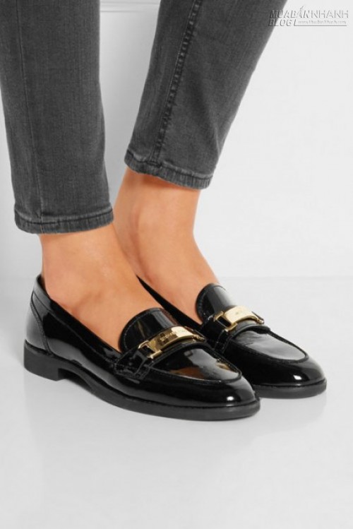 Giày brogues với chất liệu da đen bóng cũng là một món đầu tư xứng đáng nếu bạn đang tìm cho mình một đôi giày phù hợp trong mùa mưa này. Thêm quai kim loại gắn ngang thân khiến cho đôi giày của Micheal Kors này trở nên cá tính và mạnh mẽ hơn cho quý cô khi đi với chân váy denim cài cúc, hay đơn giản là chiếc jeans xanh. Giá của đôi Brogues này là 176$, tương đương 3.780.000 VNĐ.