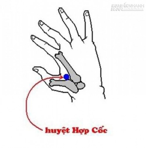 Cách bấm: Để ngón cái lên huyệt Hợp Cốc, 4 ngón tay ôm đằng sau của tay kia. Ngón cái dùng lực ấn vào huyệt Hợp Cốc và day nhẹ. Khi lòng bàn tay ra mồ hôi là được.