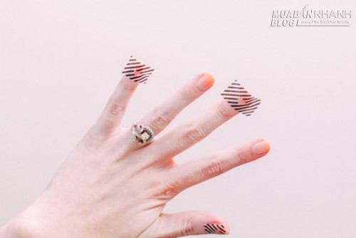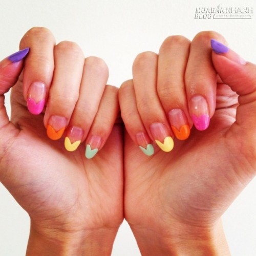 1. Nail hình trái tim. Vài trái tim be bé, xinh xinh trên móng tay sẽ giúp phong cách thời trang của bạn thêm ấn tượng và nổi bật. Dù nhìn có vẻ sắc sảo và khó thực hiện, nhưng chỉ cần tận dụng vài miếng keo dán là bạn đã có ngay kiểu nail ngọt lịm này.