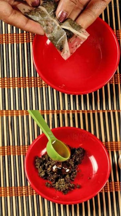 Cách thực hiện: Bạn tách phần bã trà ra bát con, thêm mật ong vào trộn đều. Rửa qua mặt với nước để loại bỏ bụi bẩn, sau đó vỗ nhẹ nước ấm lên da.Tiến hành thoa hỗn hợp vừa tạo lên toàn bộ khuôn mặt. Giữ nguyên mặt nạ trong 20 phút rồi rửa lại với nước lạnh để kết thúc quá trình.
