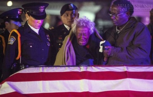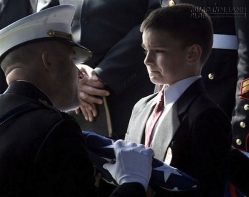 Cậu bé 8 tuổi, Christian Golczynski nhận lá cờ từ quan tài của cha mình, một lính hải quân đã hy sinh khi làm nhiệm vụ.