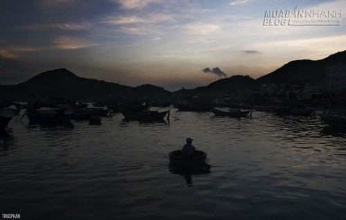 Khởi hành từ Sài Gòn đến cảng Ba Ngòi trong đêm, sáng sớm bắt chuyến tàu đầu tiên ra Bình Ba để bắt đầu hành trình trên đảo. Từ tờ mờ sáng, người dân đã bắt đầu công việc đánh cá. Ảnh: Trucphan