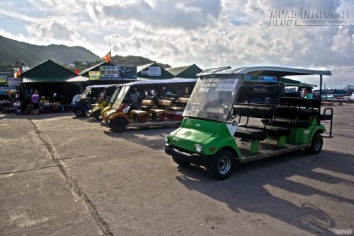 Vào những ngày thường ít khách du lịch, xe điện dùng để đưa du khách tham quan Bình Ba được nghỉ ngơi ở bãi đậu xe nhiều màu sắc. Ảnh: Trucphan