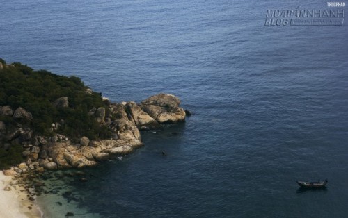 Buổi trưa và chiều là thời gian thích hợp để bạn có thể tham quan những cảnh đẹp của Bình Ba. Đứng từ núi nhìn xuống hòn Rùa thơ mộng. Ảnh: Trucphan