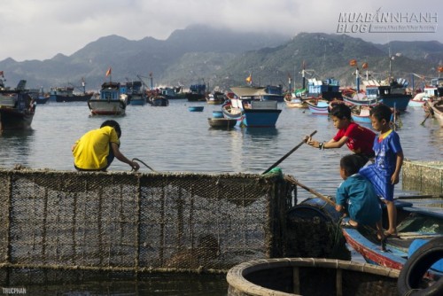 Những đứa trẻ địa phương đang được người lớn dạy về cách đánh cá bằng lồng. Như những làng chài khác ở Việt Nam, ngư nghiệp được duy trì theo kiểu cha truyền con nối truyền thống. Ảnh: Trucphan
