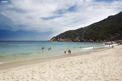Sau một ngày khám phá Bình Ba, còn gì tuyệt vời hơn khi thả mình giữa làn nước trong xanh ở bãi Nồm. Ảnh: Trúc Phan