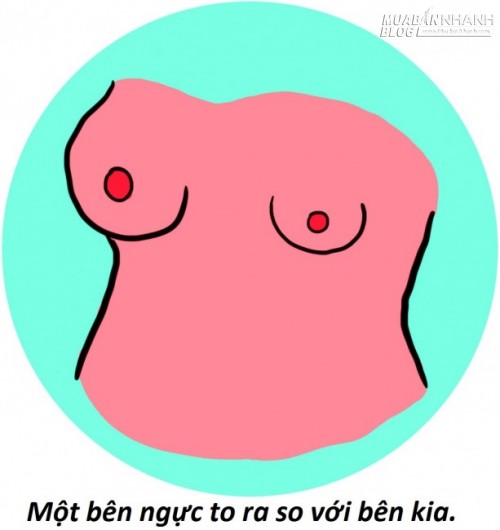 24. Có một cục u nổi lên một bên vú: Đây có thể là một cục hạch lành tính nếu nó tròn mịn và có thể lắc qua lắc lại. Tuy nhiên, tốt nhất là bạn nên đi khám bác sĩ nếu gặp bất cứ khối u nào trên ngực.