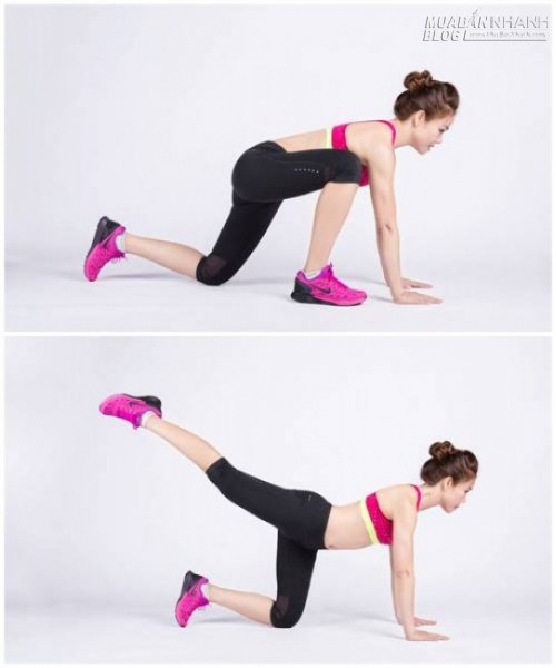 - Thực hiện tư thế quỳ trên sàn, mở rộng đầu gối bằng 2 vai sao cho vai thả lỏng, không hóp bụng.