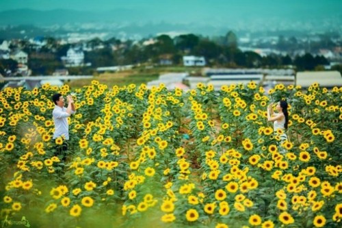 Năm ngoái Đà Lạt nổi tiếng với cánh đồng hoa hướng dương ở trang trại Đà Lạt Milk, tuy nhiên năm nay nơi đây lại không có. Bù lại Đà Lạt mới xuất hiện cánh đồng hoa hướng dương ở ngoại thành, cách trung tâm thành phố khoảng 15km. Đến đây, bạn có thể ngắm cảnh, chụp hình check in, tha hồ cảm nhận vẻ đẹp thôi miên của những ánh hoa rực rỡ dưới nắng… Thời gian lý tưởng lý nhất để lưu lại những khoảnh khắc đẹp của hoa hướng dương là buổi sáng từ 7-8 giờ hoặc buổi chiều từ 15-17 giờ.