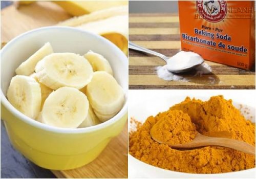 Mặt nạ 3: Chuối + baking soda + bột nghệ = mặt nạ trị mụn