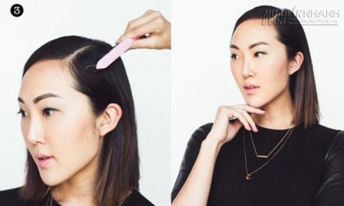 Rẽ ngôi lệch và vén tóc sau tai, mẫu tóc này sẽ giúp cố định nếp tóc và không khiến bạn cảm thấy khó xử vì hiện tượng bù xù do cơn mưa bất chợt.