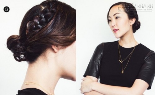Sau khi kẹp ghim cố định lại các lọn tóc, bạn đã có mẫu tóc rất gọn gàng cho ngày mưa gió.
