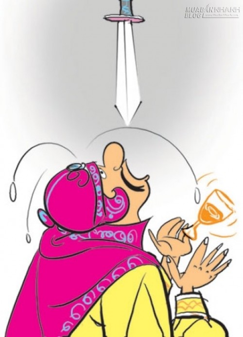 - Ngài thật là may mán! Ngài có tất cả mọi thứ mà người khác ao ước. Ngài chính là người hạnh phúc nhất thế gian. Dionysius chán ngấy khi suốt ngày phải nghe những lời đó của Damocles. Một hôm, nhà vua bảo với người cận thần của mình: