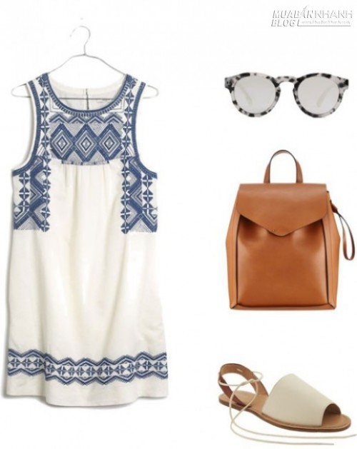 Hãy thử những phụ kiện giản dị, không cầu kỳ kiểu cách để làm nổi bật rõ đường nét và màu sắc của chiếc váy. Ví dụ chọn một chiếc túi hoặc ba lô với các đường nét và khâu ẩn tinh tế. Kết hợp cùng với kính mát cổ điển màu trung tính. Cách phối đồ này mang đến cho bạn vẻ đẹp thanh lịch, giản dị.