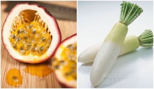 - Bạn chỉ cần lấy hết phần thịt bên trong của quả chanh dây và ½ của cải trắng đã rửa sạch rồi nghiền nhuyễn, lọc lấy nước.
