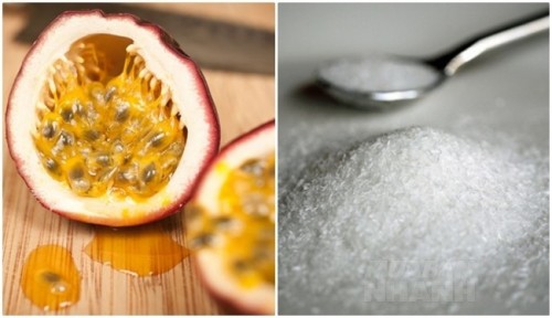 – Lấy hết phần ruột bên trong quả chanh dây rồi trộn đều với 1 thìa cafe bột ngọt.