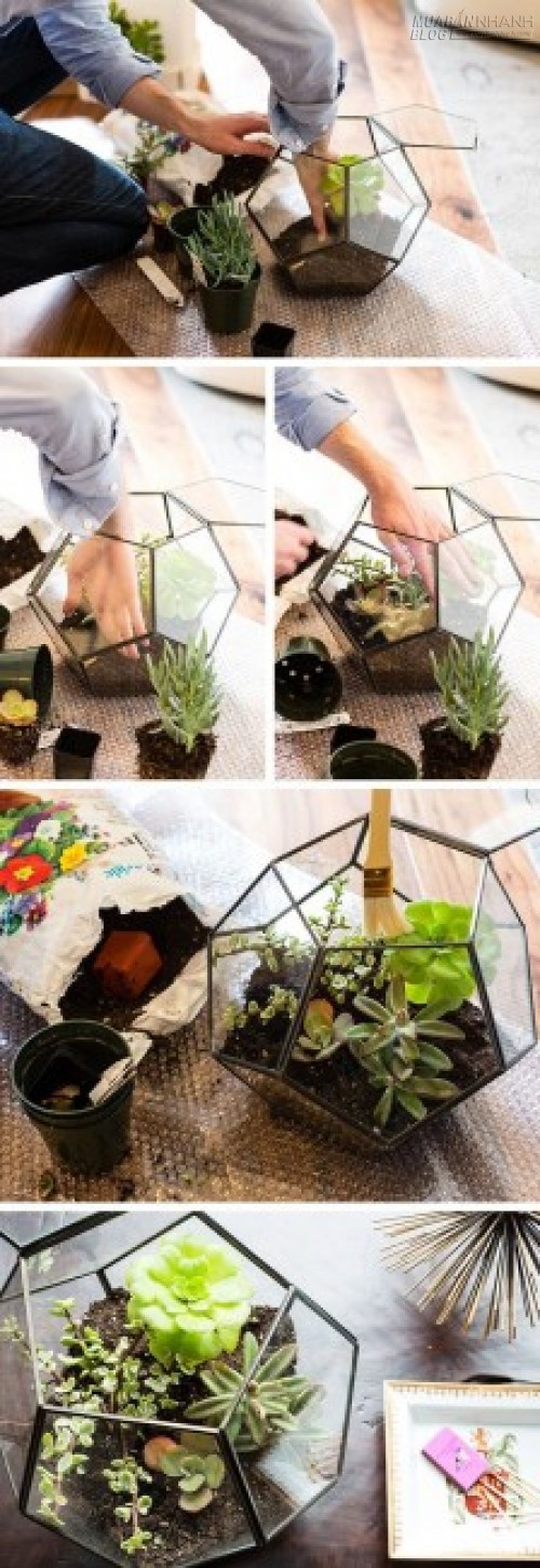 4. Trồng cây trong chậu kính to: