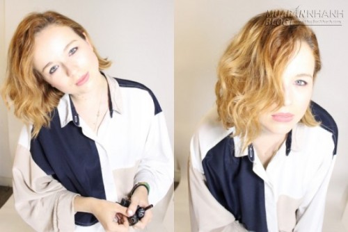 Bạn sẽ không phải tốn tiền ra tiệm để có một mái đầu bob xoăn nhẹ bồng bềnh đâu, vì đơn giản là: sau khi gội đầu, hãy thấm tóc nhẹ nhàng vào chiếc khăn bông rồi chia tóc thành từng lọn và để khô tự nhiên, nhớ là tuyệt đối không sử dụng máy sấy nhé. Khi tóc đã khô rồi, bạn hãy lật tóc thật sâu qua một bên để có 1 bên tóc rất dày, còn bên tóc kia lại rất mỏng. Cuối cùng, bạn chỉ việc dùng một ít nước xịt tóc hoặc gel để giữ nếp tóc thôi. Giờ thì bạn đã có một mái đầu bob cá tính với những sóng xoăn cực nhẹ nhàng và tinh tế rồi đấy!