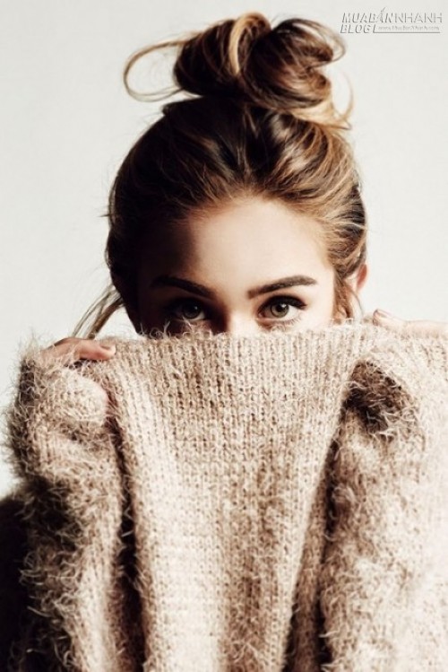 Bạn đừng nghĩ rằng tóc búi không hề phù hợp với mùa lạnh, thực tế chúng lại rất được yêu thích bởi khi kết hợp với những chiếc áo len cổ lọ, kiểu tóc này sẽ mang đến cho bạn vẻ đẹp vô cùng trẻ trung lại có thể ăn gian thêm vài cm chiều cao nữa đấy. Để tạo điểm nhấn cho kiểu tóc búi này, bạn nên làm xoăn nhẹ đuôi tóc, sau đó cuộn tròn lọn tóc lên đỉnh đầu, dùng tay nơi lỏng bím tóc để tạo những lọn tóc rối tự nhiên .