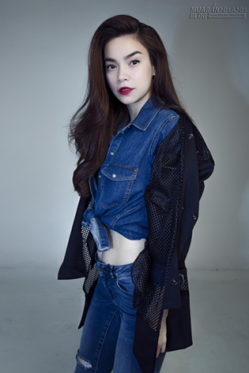 Tóc Tiên với hình ảnh sexy và không kém phần mạnh mẽ với mẫu áo thun ngắn bó sát và mix cùng jean xanh.