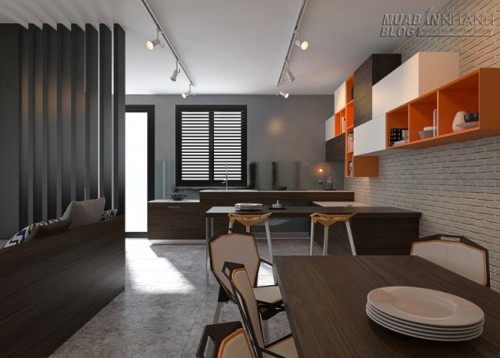 Phối cảnh nội thất :Phòng Khách - Bàn Ăn - Bếp ![]()