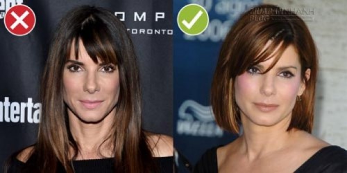 Không nên: Để mái bằng và tóc dài khi mặt hơi xương